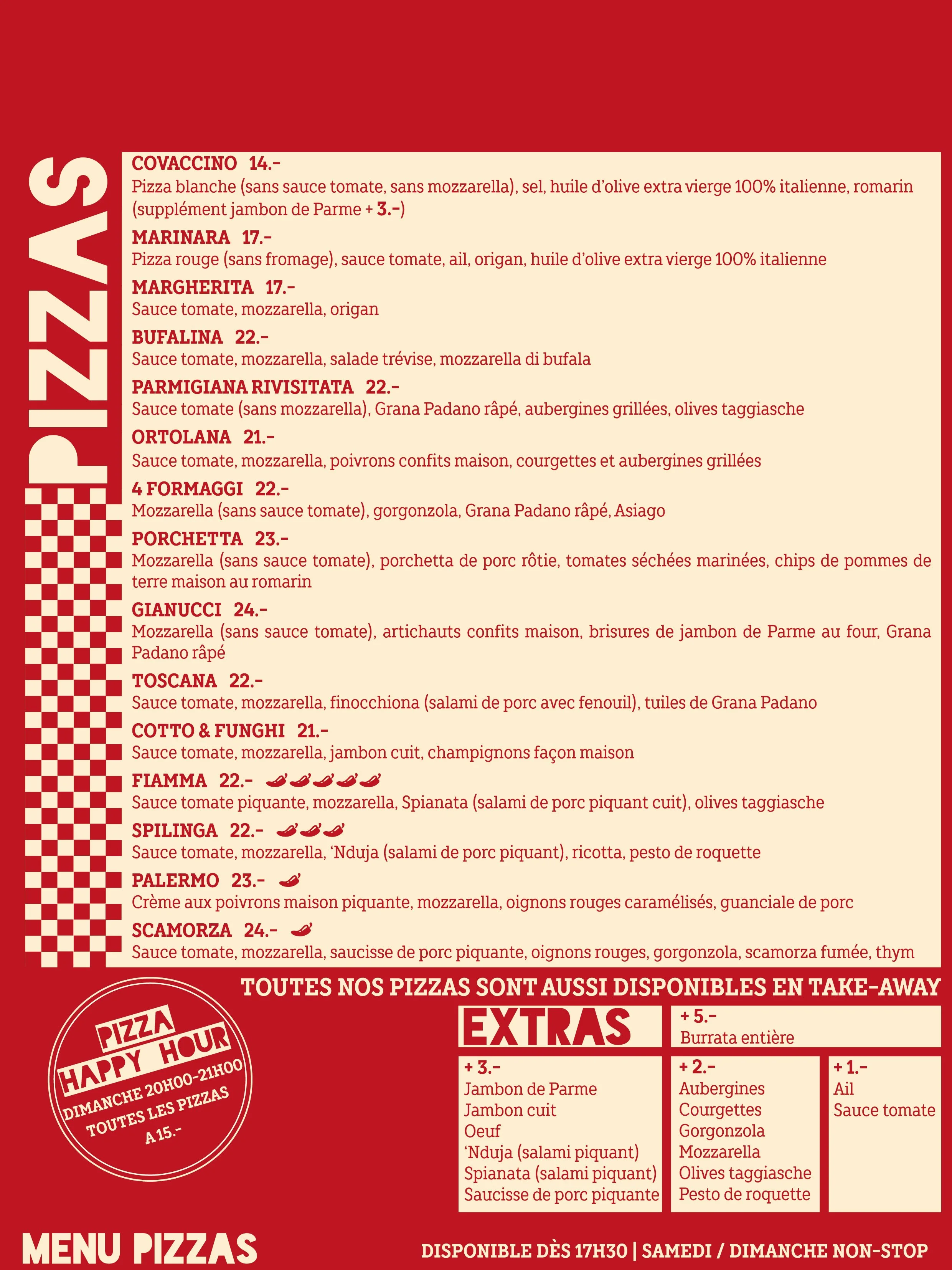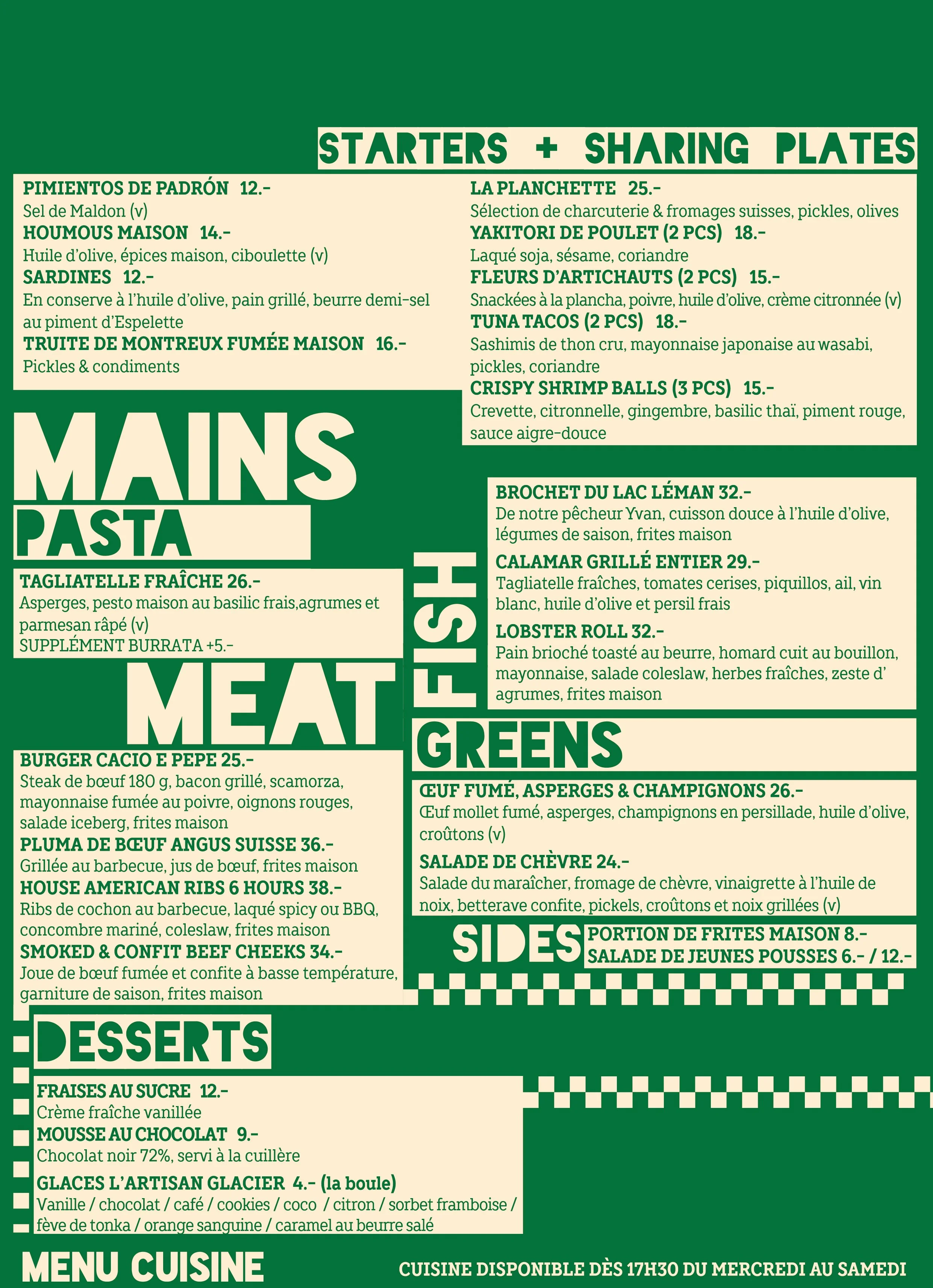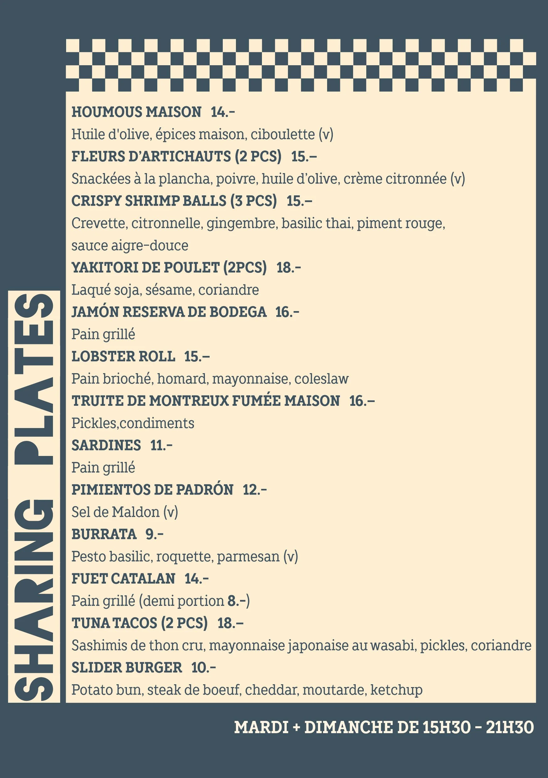 LUN / CLOSEDMAR / kitchen 15H30 - 21H30MER / kitchen 15H30 - 22H00JEU / kitchen 15H30 - 22H00VEN / kitchen 15H30 - 22H30SAM / kitchen 11H30 - 22H30DIM / kitchen 11H30 - 21H30