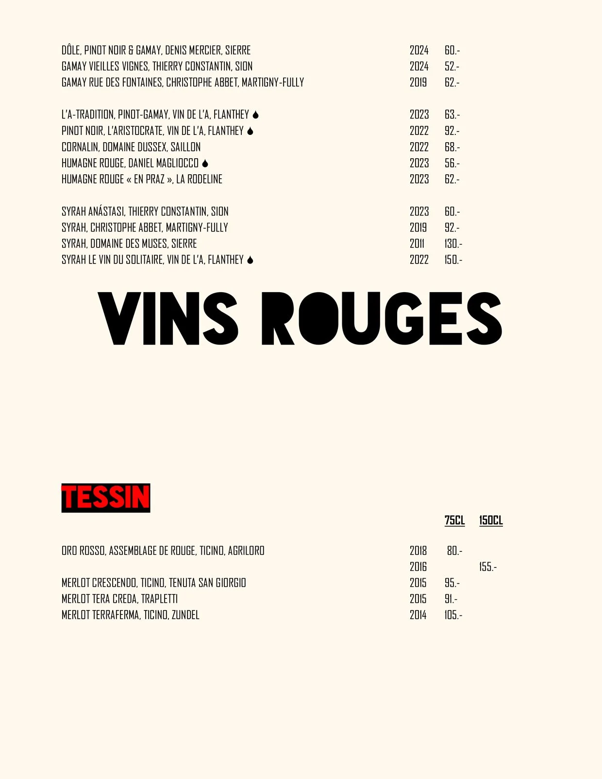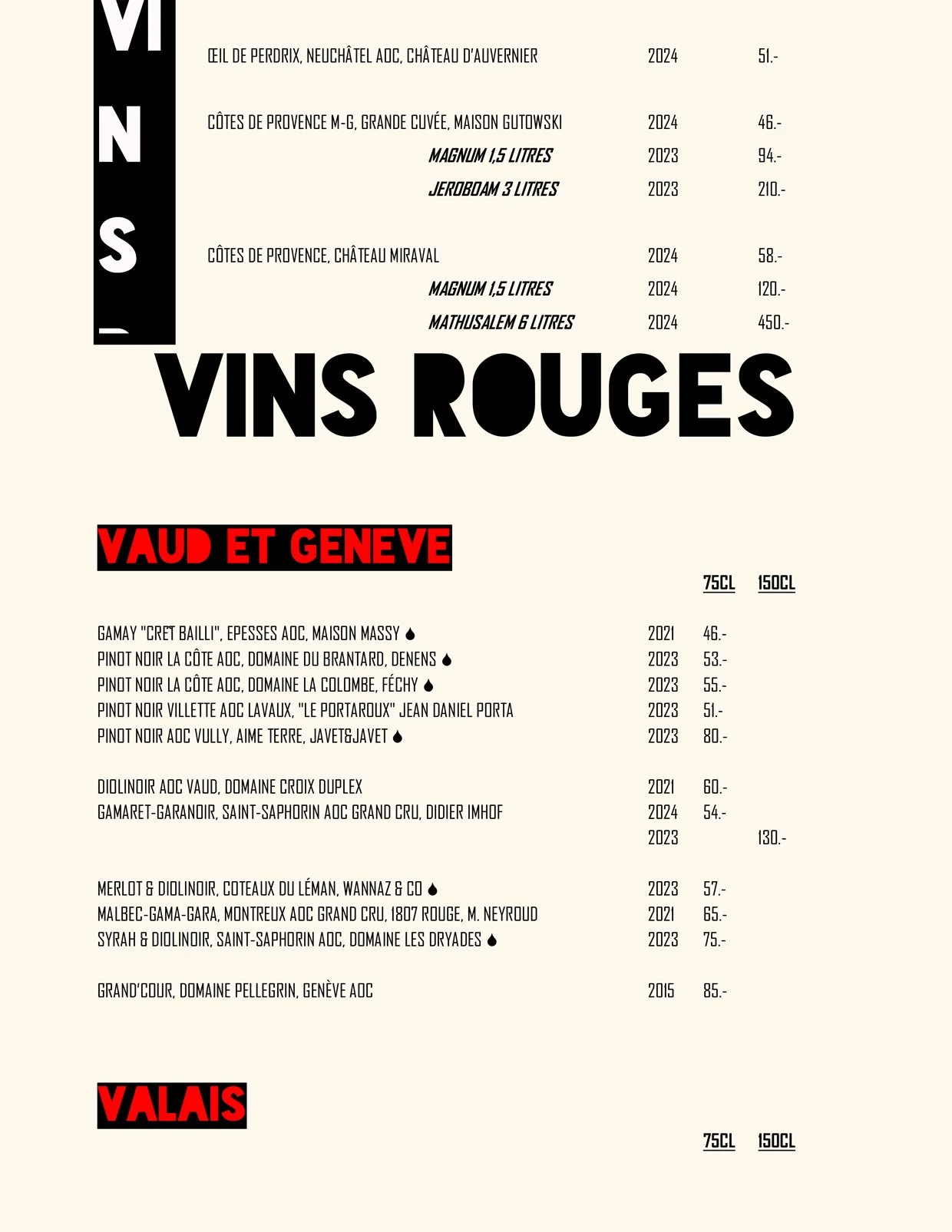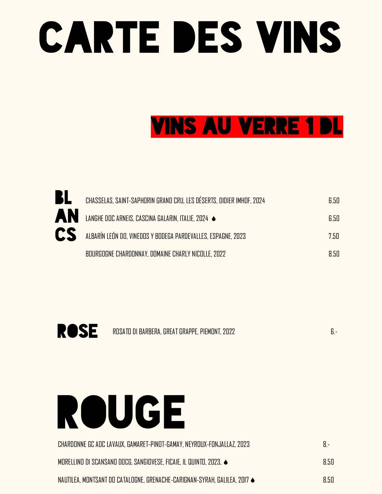 Nos Menus / Nos Boissons / Wine