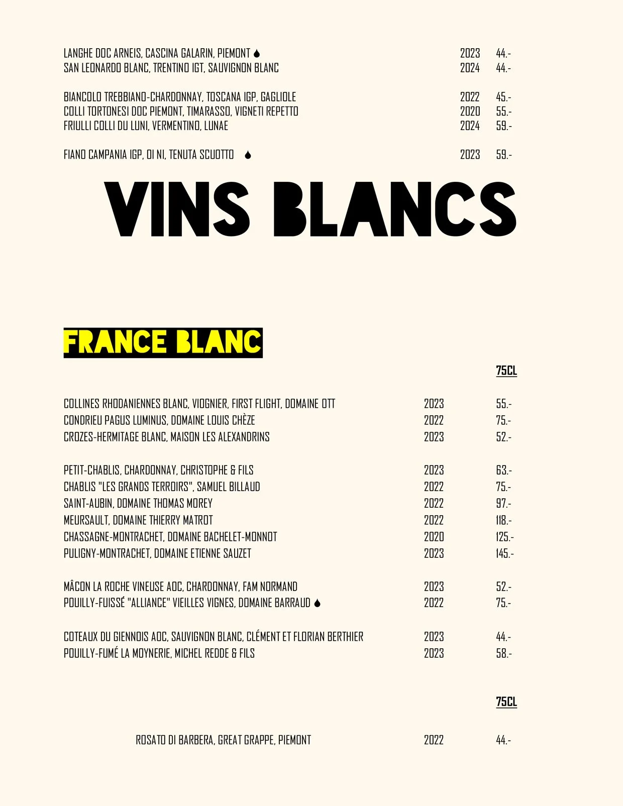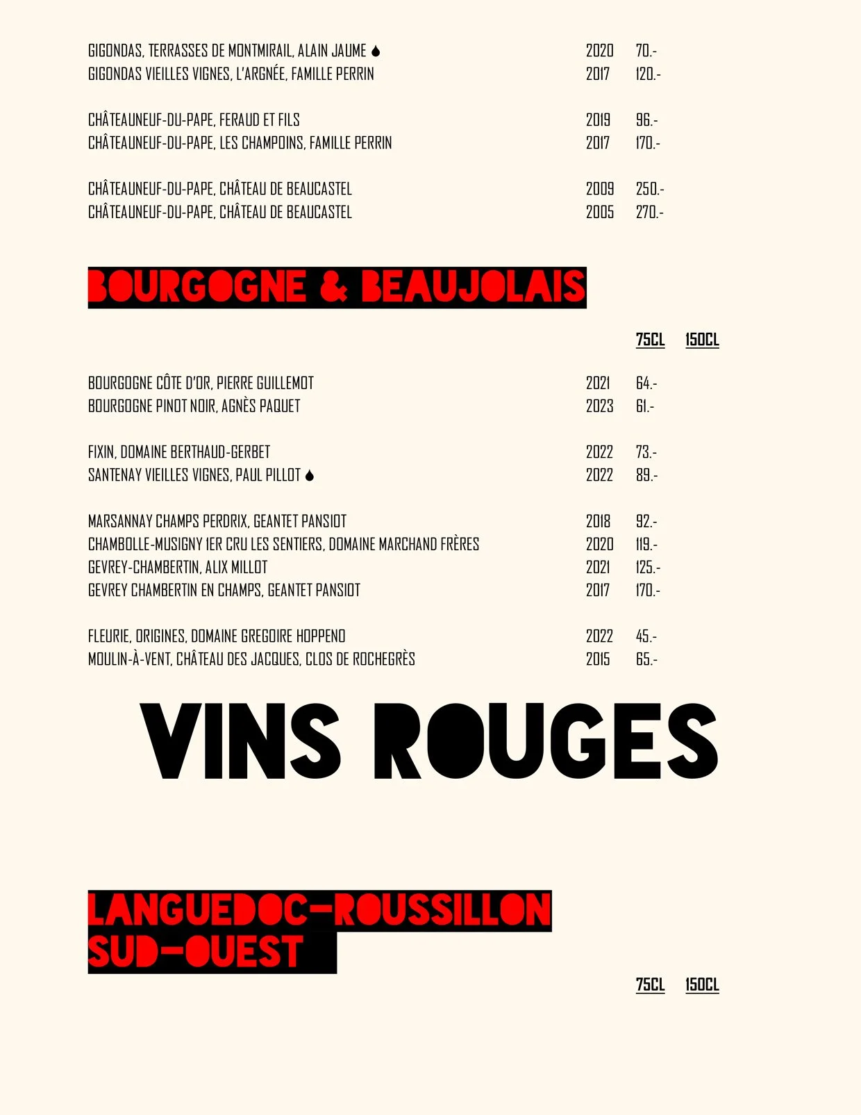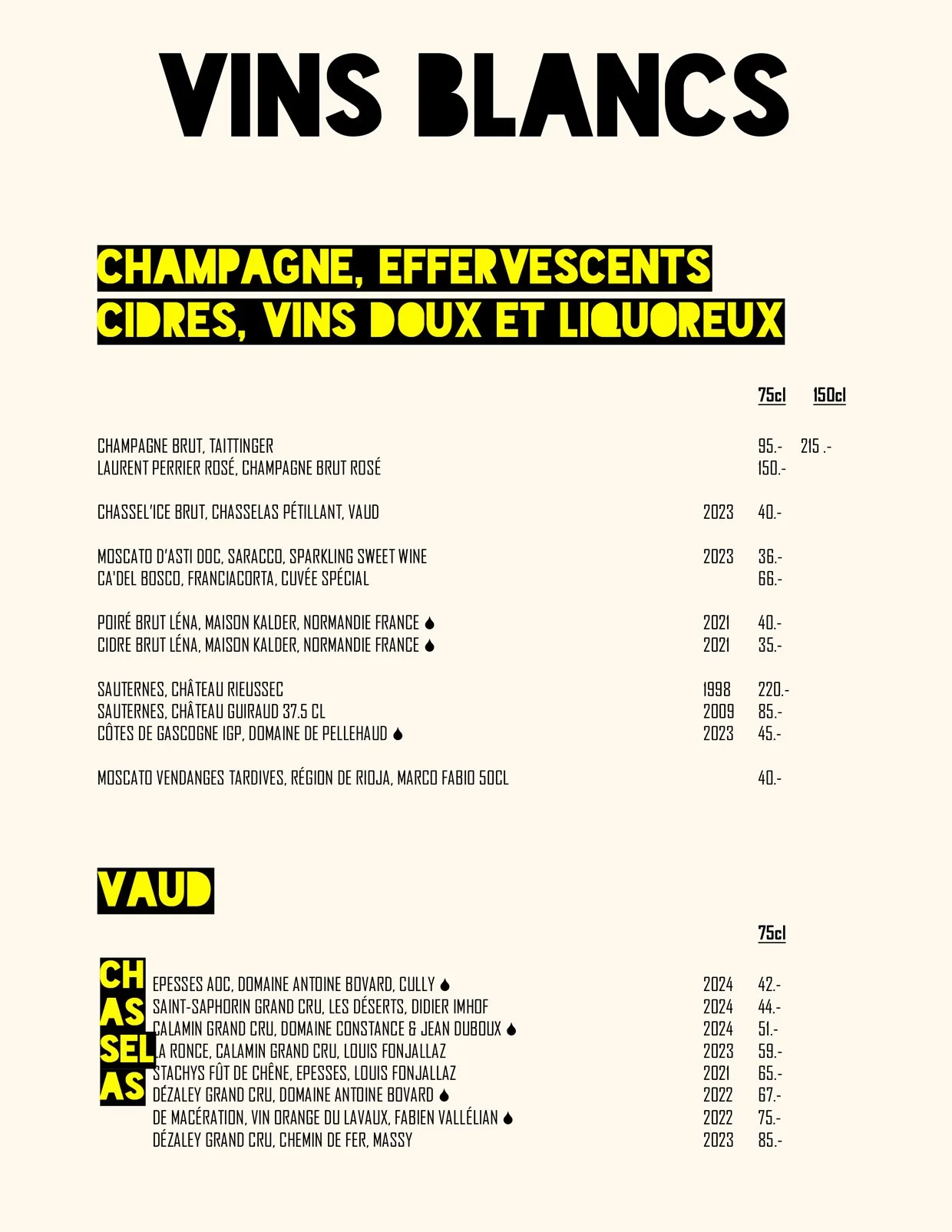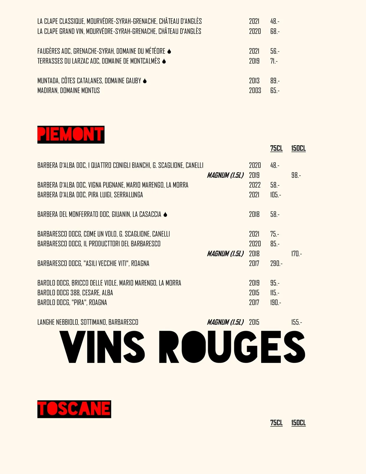 Nos Menus / Nos Boissons / Wine